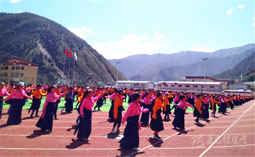 在雅江縣呷拉教育園區(qū),學生們在操場跳課間舞。