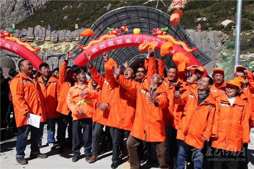 雀兒山隧道通車(chē)后,欣喜的五道班工人。
