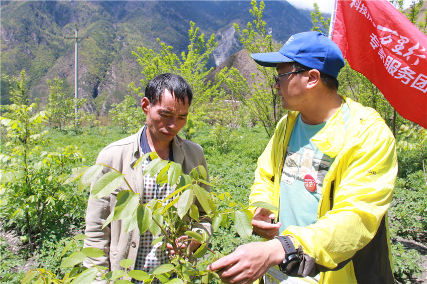 田疇織錦繡,沃野好風(fēng)光。4月22日,康定市金湯鎮(zhèn)先鋒二村核桃種植基地里熱鬧非凡,來自四川農(nóng)業(yè)大學(xué)、省林科院的專家組正在給當(dāng)?shù)厝罕娺M(jìn)行農(nóng)業(yè)技術(shù)培訓(xùn)。新品種栽培模式、新優(yōu)品種介紹、土肥水管理和病蟲害防治……一項(xiàng)項(xiàng)種植戶所需的實(shí)用技術(shù)在田間地頭進(jìn)行面對(duì)面手把手的指導(dǎo)和交流。