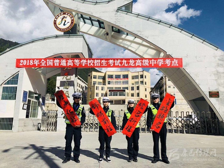 九龍縣交警拉對聯(lián)助力高考??h委中心報(bào)道組 供稿