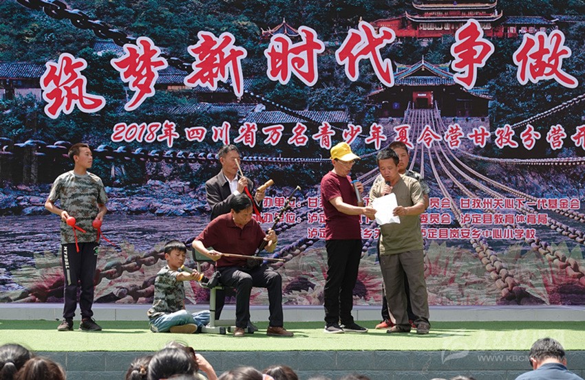 瀘定縣關(guān)工委的“五老”為孩子們演唱心中的歌。