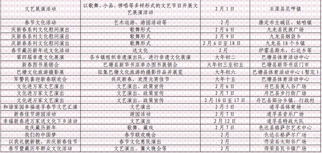 2019年春節(jié)藏歷新年期間“我們的中國夢·文化進萬家”活動安排