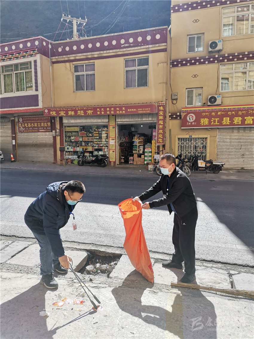 雅江縣干部職工清掃路面垃圾。