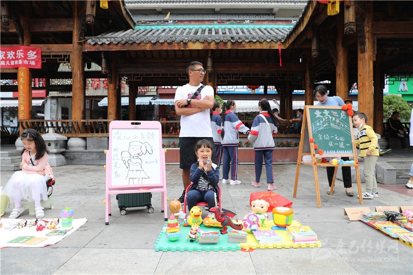 “這個(gè)玩具1元錢賣不賣?”“已經(jīng)很便宜啦!最低3元錢。”5月31日,瀘定橋廣場(chǎng)人流涌動(dòng)、熱鬧非凡,叫賣聲不絕于耳,不少“小顧客”在各個(gè)攤位之間,認(rèn)真地挑選自己心儀的商品,有模有樣地討價(jià)還價(jià),廣場(chǎng)變成了熱鬧的自由貿(mào)易市場(chǎng)。