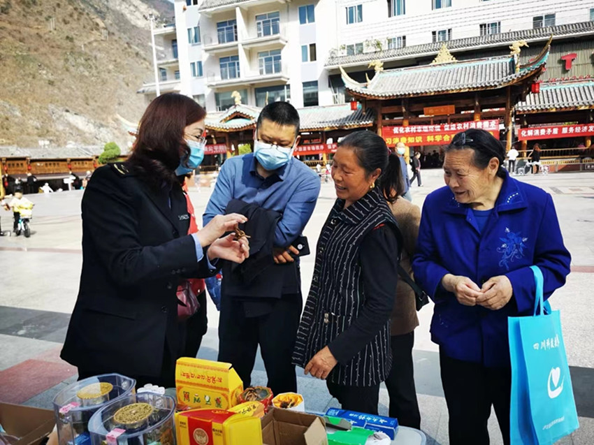 向群眾介紹辨別真假農(nóng)特產(chǎn)品常識(shí)。
