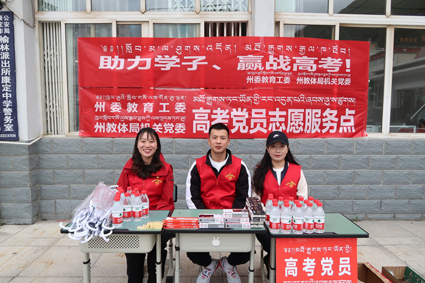 值得一提的是,除了公安交警部門的全程護(hù)航外,各職能部門對高考考生也傾注了許多關(guān)愛。記者在康定中學(xué)考點看到,州委教育工委、州教體局等部門還設(shè)立了高考黨員志愿服務(wù)點,免費為考生提供文具、雨具、礦泉水等。