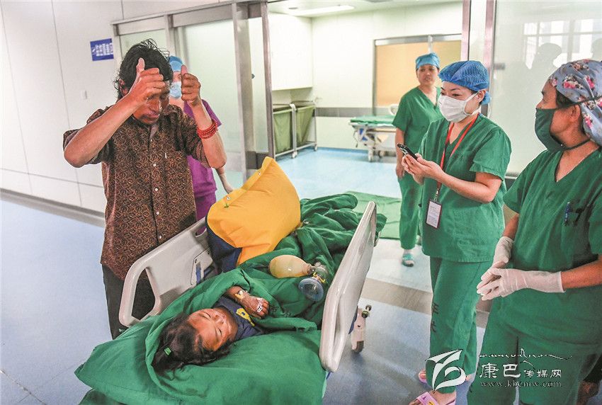 8月23日,來自四川省甘孜藏族自治州甘孜縣兩歲的藏族男孩白瑪日扎在哈爾濱市第一醫(yī)院成功進(jìn)行唇腭裂修復(fù)手術(shù)。白瑪日扎的父母是牧民,常年在大山上放牧,兩個月才能下山見一次孩子。白瑪日扎和爺爺生活在甘孜縣里。 8月中旬以來,哈爾濱市第一醫(yī)院攜手“中國宋慶齡基金會”、“一笑慈善基金”項目開展大型公益活動,特邀國際頜面外科、美容整形外科、麻醉科等醫(yī)療專家團(tuán),免費(fèi)為貧困家庭唇腭裂兒童手術(shù)治療,并為特困家長和孩子提供免費(fèi)的食宿,白瑪日扎便是免費(fèi)接受救治兒童中的一員。8月23日,白瑪日扎的爺爺白瑪多吉(左)對醫(yī)護(hù)人員伸出大拇指表示感謝。 新華社發(fā)