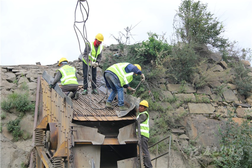 8月25日,塔公村采砂場早已停止了一切生產(chǎn)。記者在現(xiàn)場看到,起重機(jī)正將砂場里10多米長,非常笨重的傳送帶拆放在地上。數(shù)十名村民和工人一起,用挖機(jī)、吊車、氣割機(jī)等設(shè)備將生產(chǎn)砂石的設(shè)備進(jìn)行拆解,拆除的生產(chǎn)設(shè)備、機(jī)械零件整齊地擱置一旁,砂場拆除工作正在安全有序進(jìn)行。望著曾經(jīng)給村民帶來巨大效益的設(shè)備被拆解在地上,塔公村村主任伍金多吉流下了傷心的淚水。