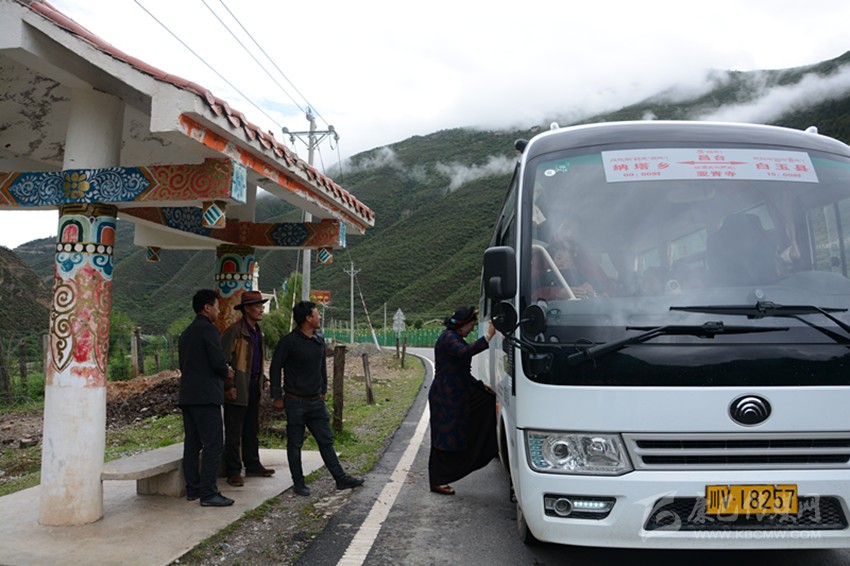 駕駛員多吾趁乘客上車的時間與記者聊開了:“剛才我在開車,按規(guī)定不敢與你搭話。公交車是3月15日開通的,有兩個車,上午9點和下午3點各從納塔和縣城對開。全條線路135.9公里,途經(jīng)2個鎮(zhèn)5個鄉(xiāng)58個行政建制村,設(shè)有23個招呼站,為上萬人口提供出行方便。剛開通的時候,大家不知道也不習(xí)慣,19座的公交車每趟也就幾個人。時間久了,坐車的人多了,好多趟都是滿員。你看這趟,納塔坐了9個,阿察這又要上2個,就11個了,一會到安孜,上的人應(yīng)該要多些。”