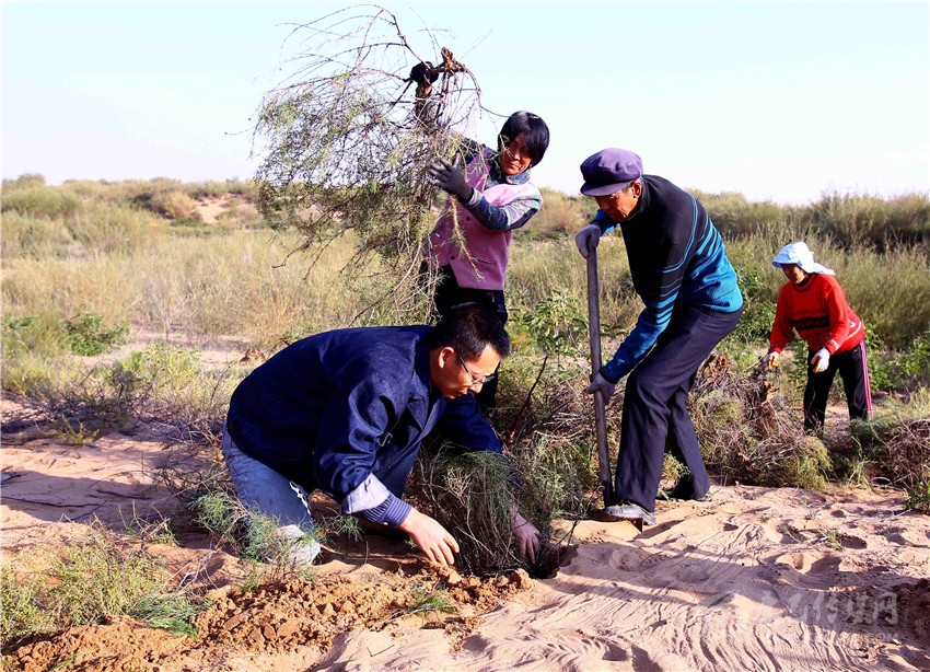 張應龍的造林面積目前已超過38萬畝。而已近花甲之年的張應龍并不滿足于沙漠治理僅僅產(chǎn)生生態(tài)效益,他希望能從沙漠里找到一條“生態(tài)致富路”。經(jīng)過多年的實踐,他找到一種叫“長柄扁桃”的灌木兼?zhèn)渖鷳B(tài)與經(jīng)濟特性。