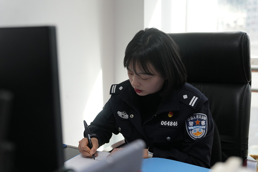 邱壘自進(jìn)入公安機(jī)關(guān)工作以來,以“零”為起點(diǎn),從一般民警到面面俱到的辦公室主任。這條追光路上,她如陀螺一般未曾停歇,逐漸褪去青澀,沉淀成熟,一步一個(gè)腳印,努力實(shí)現(xiàn)她當(dāng)初的“入警夢(mèng)”。