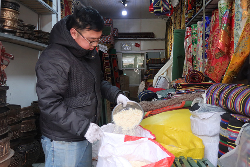“歡迎光臨,你需要買點什么?!?月20日上午,道孚縣城乍暖還寒,在鮮水東路一家名叫“建文商貿(mào)”的店里,老板馬建文見有客人進來,趕忙停下手中的活計,上前迎候。