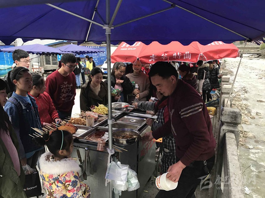 那么真實情況到底如何呢?7日,記者專門來到康定中學走訪調查。記者搭乘出租車前往學校,途中司機卻回應“康中校門口那一段全是賣炸洋芋、炸雞腿的攤攤,車子根本開不過去,只能提前下車?!碑斢浾卟叫羞^橋到達校門口路段時,雜亂無序而又異常喧鬧的場面立刻映入眼簾。約摸十來家燒烤油炸“流動攤點”上,商販們手中的烤具上下翻飛,幾十名身著“康定中學”校服的學生駐足其間,從校門出入的車輛不斷鳴笛避讓??久娼?、炸土豆、烤雞腿,濃濃的油煙、各種調料混合的氣味、滋滋的油炸聲……儼然一副“美食街”的火爆景象。