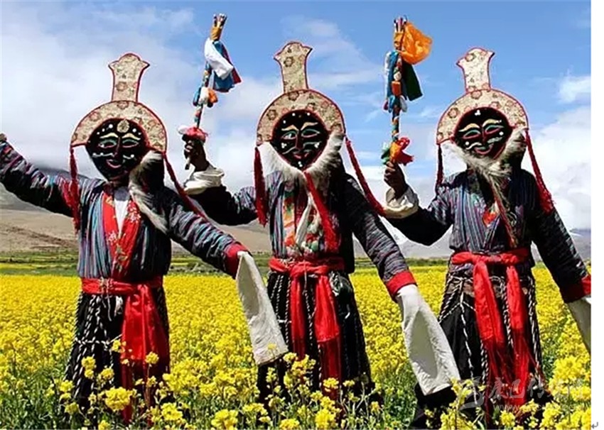 葩,意為面具。是藏族同胞在節(jié)日慶典期間,跳舞時(shí)戴在頭上的裝飾品,面具有各種不同形狀、不同色彩和表現(xiàn)風(fēng)格。根據(jù)制作材料的不同可分為泥料、布料、皮料等不同種類的面具。頭像面具初始于十三世紀(jì)末, 除表現(xiàn)人物形象的面具以外,與此同時(shí)表現(xiàn)飛禽走獸形象之類的面具亦隨之問世。